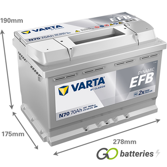 N70 Varta Dynamic EFB Start-Stop Battery 12V 70Ah 570 500 076 (096EFB)