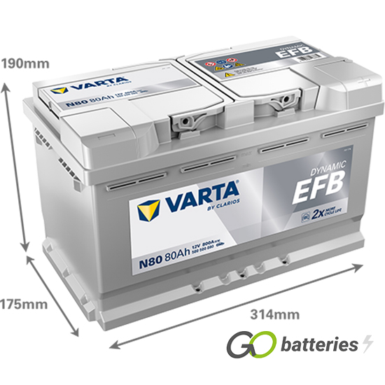 N80 Varta Dynamic EFB Start-Stop Battery 12V 80Ah 580 500 080 (115EFB)